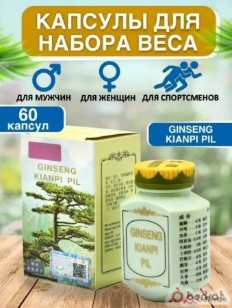 Набор веса до 10 кг за 30 дней. ✔️увеличивает пищеварительную способность ✔️улучшает использование питательных веществ ✔️улучшает естественную устойчивость организма к болезням ✔️Увеличение веса без накопления избыточного жира ✔️усиление пищеварительной силы ✔️успокаивание нервов ✔️приводит к постепенному развитию сильных мышц и идеального телосложения. Количество: 60 штук