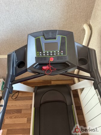 Беговая электрическая дорожка . 43__ программ тренировок, регулировка угла наклона, измерение пульса и скорости, встроенный компьютер с возможностью просмотра пройденного расстояния, датчик измерения пульса на ручке