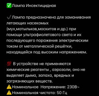 Лампа предназначено длязаманивание летающих насекомых мух мотыльков и так далее.