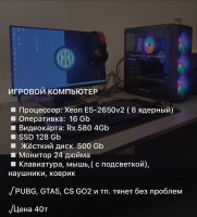 Полный комплект в сборе 2-3 недели назад собран с нуля тянет любые игры установлены гта 5 с модами и блур цена 90000тыч срочно торг Звонить на этот номер 89188188017