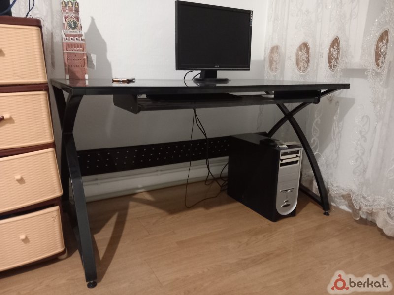 В хорошем рабочем состоянии, ПК обычный офисный, стол металлический каркас и стекло. Продаю из-за нужды денег, 30тыс!