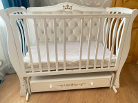 Продам кроватку в хорошем состоянии ) царапину видно на фото, с ним отдам матрас и красивое постельное белье ) покупалось намного дороже