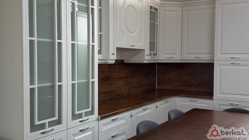*Кухня «Светлана» 420*; ХАРАКТЕРИСТИКИ: • Пр-во: Ставрополь • Цвет: Белый. • Материал фасадов: Крашеный МДФ. • Стеновая и столешница в комплекте. • Петли с доводчиками • Цвет столешницы и стеновой: орех • Ручки золото. •Бутылочницы. *Цена в рассрочку:* 88.000 *За наличный расчет сделаем скидку* ✓ *Есть бесплатная доставка по Ингушетии*