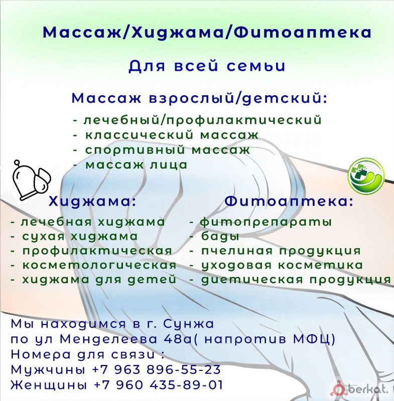массаж и хиджама для взрослых и детей в сунже напротив мфц