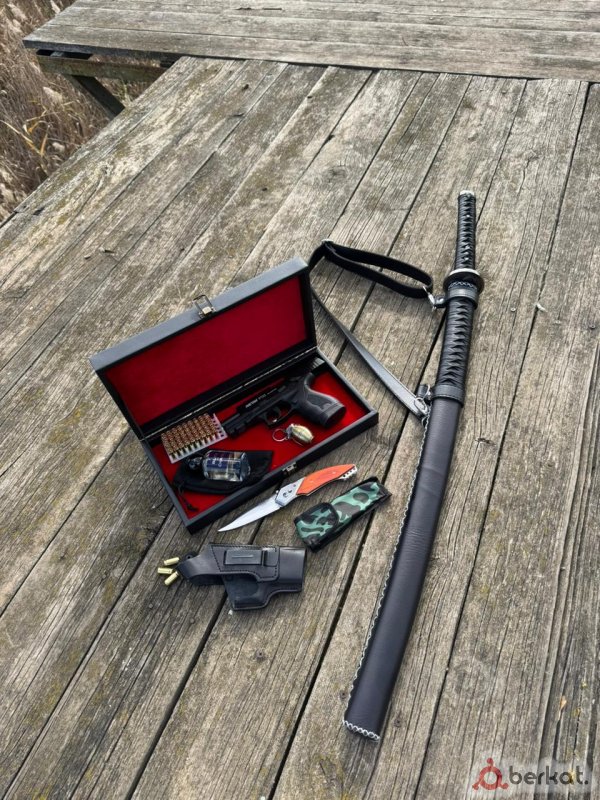 Катана + Глок PT23 Сигнальный Светошумовой Никаких увечий не наносит Для покупки разрешение не нужно Калибр 9мм