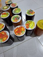 Разные домашние заготовки .. малина, айва,кизил, груша, клубника по 300 руб. Чёрная смородина 450руб. Яблочное повидло 200руб. Компоты и соления по 350 руб. Аджика ,салат зелёные помидоры по 250руб.