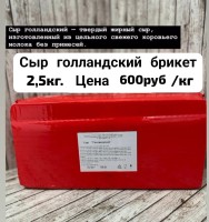 Сыр голландский брикет 1кг и 2,5кг(600р/кг)