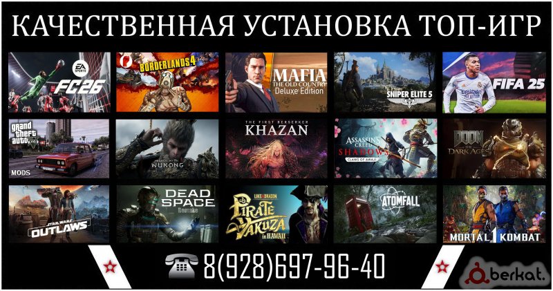 ✫ Установка различных компьютерных топ-игр (смотреть фото) ✫ Большинство данных игр не взломанные (защита Denuvo), скачать их с интернета и установить как обычные игры, не получится ✫ Вместе с данными играми устанавливаю все необходимые программы, приложения и драйвера ✫ На фотке обозначены лишь некоторые топ-игры (их еще много) ✫ Цена зависит от того, смотря какую именно игру нужно установить (спрашивать) ✫ Установка игры GTA-5/Mods (графика, российские авто, иномарки, русская озвучка) - от 1000р. ✫ Есть и новинки игр, особенно Borderlands-4, Mafia-The Old Country/Dеluхе Еditiоn ✫ Для установки игр, Вам необходимо привести свой системник-ноутбук и оставить на 1/3 сутки ✫