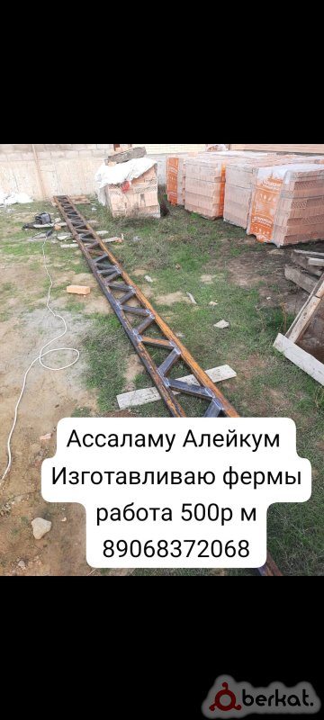 Ассаламу Алейкум изготавливаю сварные фермы теплицы и прочие сварные конструкции . Фермы 500 р м работа материалсчитается отдельно
