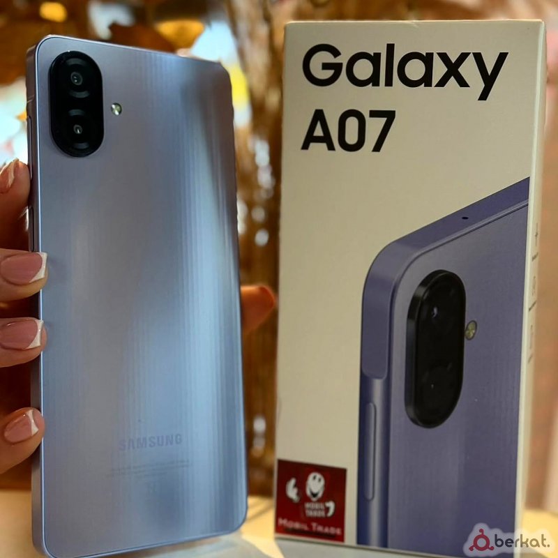 Samsung Galaxy A07 4G Дисплей: 6.7" PLS TFT - 720 x 1600 Чип: Mediatek Helio G99 Камера: 2 (50 MP + 2 MP) Батарея: 5000 мАч OS: Android 15 Вес: 184 г.