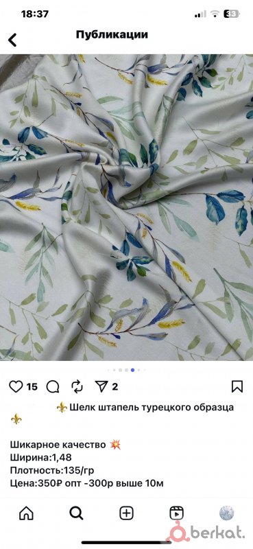 Продаю шелк штапель Турецкого образца. Ткань очень приятная и плотная, ничего не просвечивает. В рулоне больше 18 метров. Цена 5000. По 280 за метр.