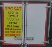 Прокат столы, стулья, морозильники, печи, палатки, кипятильники, посуда, доставка по Сунженскому и Назрановскому району т. 89287435658